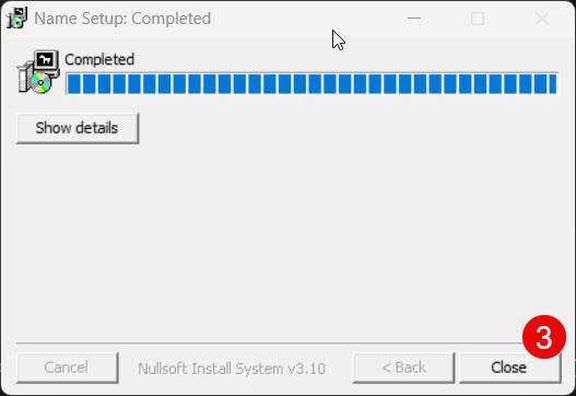 Click Install to begin. Once the progress bar is complete, click Close to exit the installer.